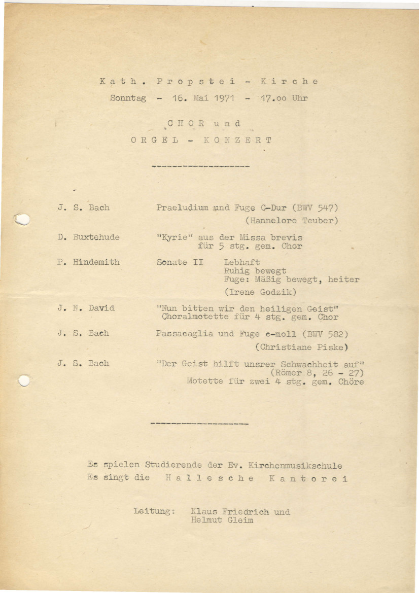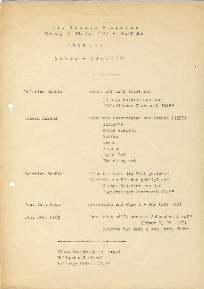Hier die vermutlich ersten Dokumente des Zusammengehens der beiden Chöre, aus denen die Hallesche Kantorei hervorging, und die beiden ersten