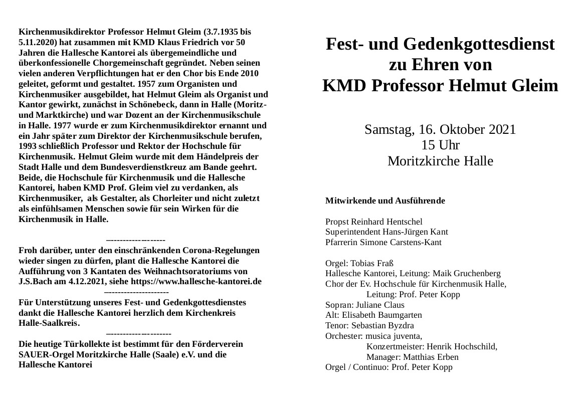Pandemie-Ruhephase, die Möglichkeit, Prof. Gleim mit einem Fest- und Trauergottesdienst zu ehren, und uns nach langer Abstinenz am Singen