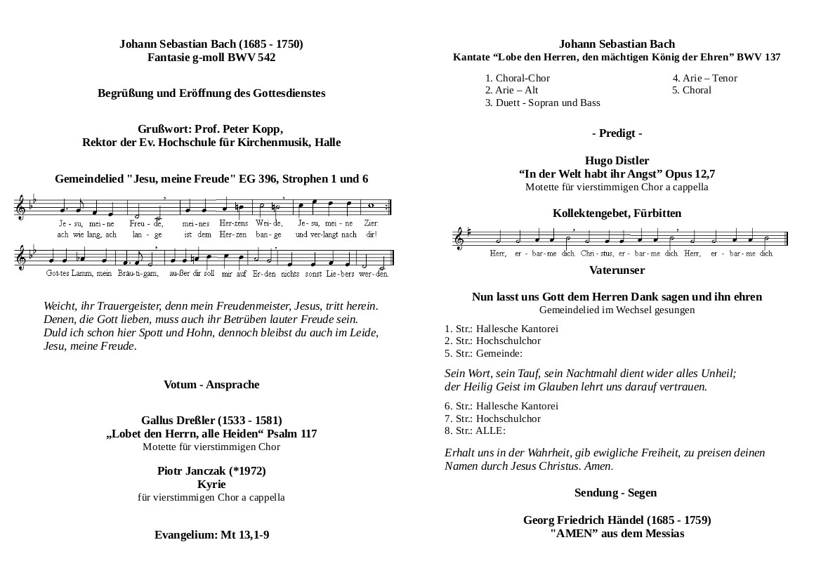 Wie dem Programm des Gottesdienstes zu entnehmen ist, hat die