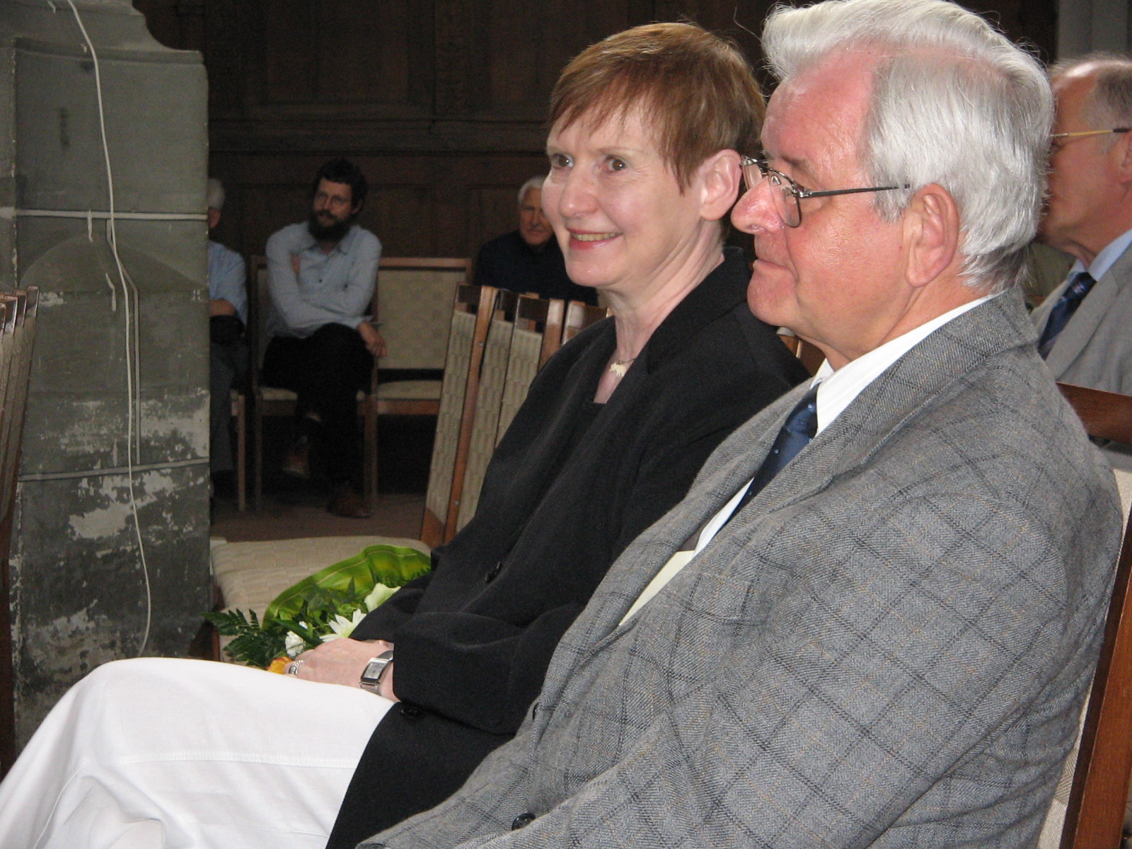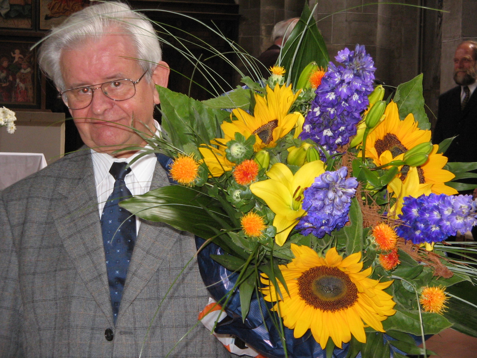 Geburtstags-Laudatio, sowie enes der Geburtstags-Bouquets. In der zweiten Reihe gratulieren unser jetziger