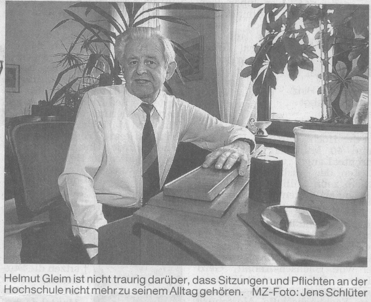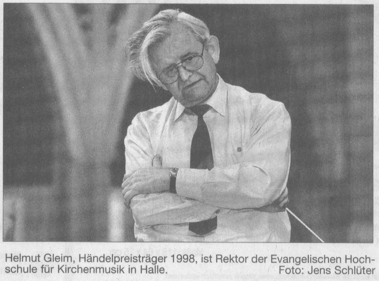 Zwei Bilder aus frühen Presseberichten zeigen Prof. Gleim am Schreibtisch bzw. in typischer Haltung bei einer Chorprobe: